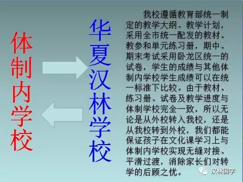 南阳华夏汉林学校是南阳市教育局批准的唯一一所以国学为特色的全日制寄宿式学校。学校以德育为基础,着重落实德行教育与经典力行的相关课程,将传统文化经典课程与国家教育部规定的文化课程有机结合,形成德育与智育同步发展,圣贤教育与现代教育相互融合的办学模式,旨在为国家为社会培养品学兼优、德才兼备的有用人才。