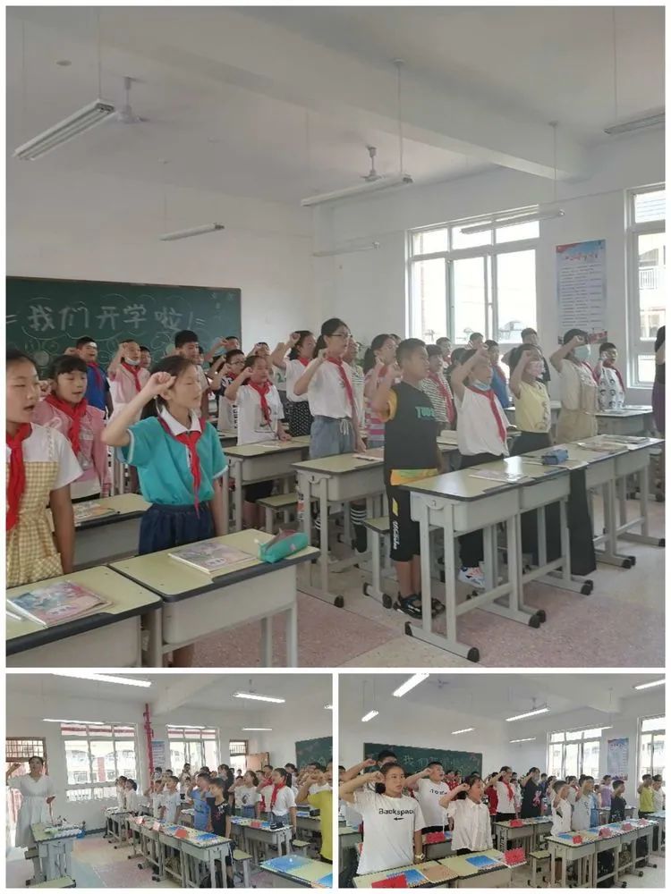 迎着冉冉升起的五星红旗,全体师生表情凝重,目光如炬,展开歌喉,齐唱国歌。雄壮的《义勇军进行曲》激起师生真挚而深厚的爱国热情。