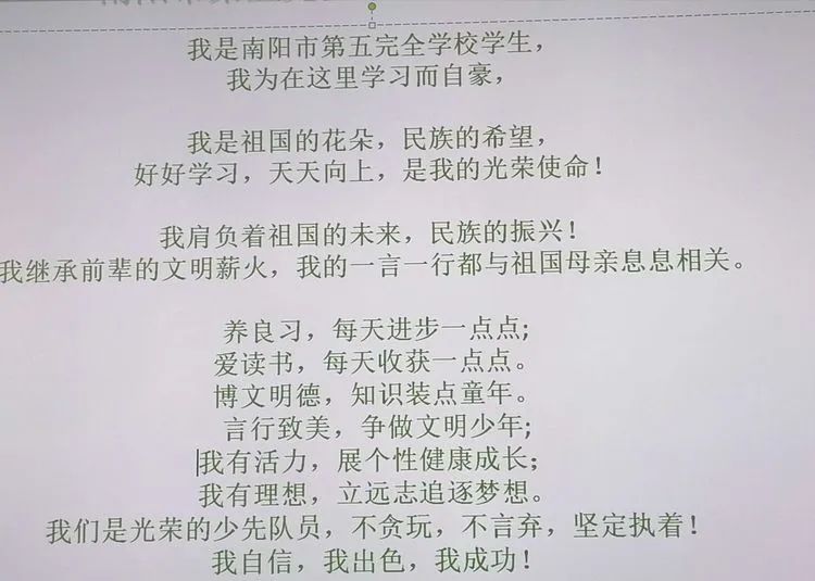 新学校,新面貌,新起点。让我们努力做到:开好头,起好步,奔着目标去努力;健身心,提素养,多和好书交朋友;讲礼貌,懂礼仪,人人都是谦谦君子;显个性,展风采,放飞理想,共谱五全华章!