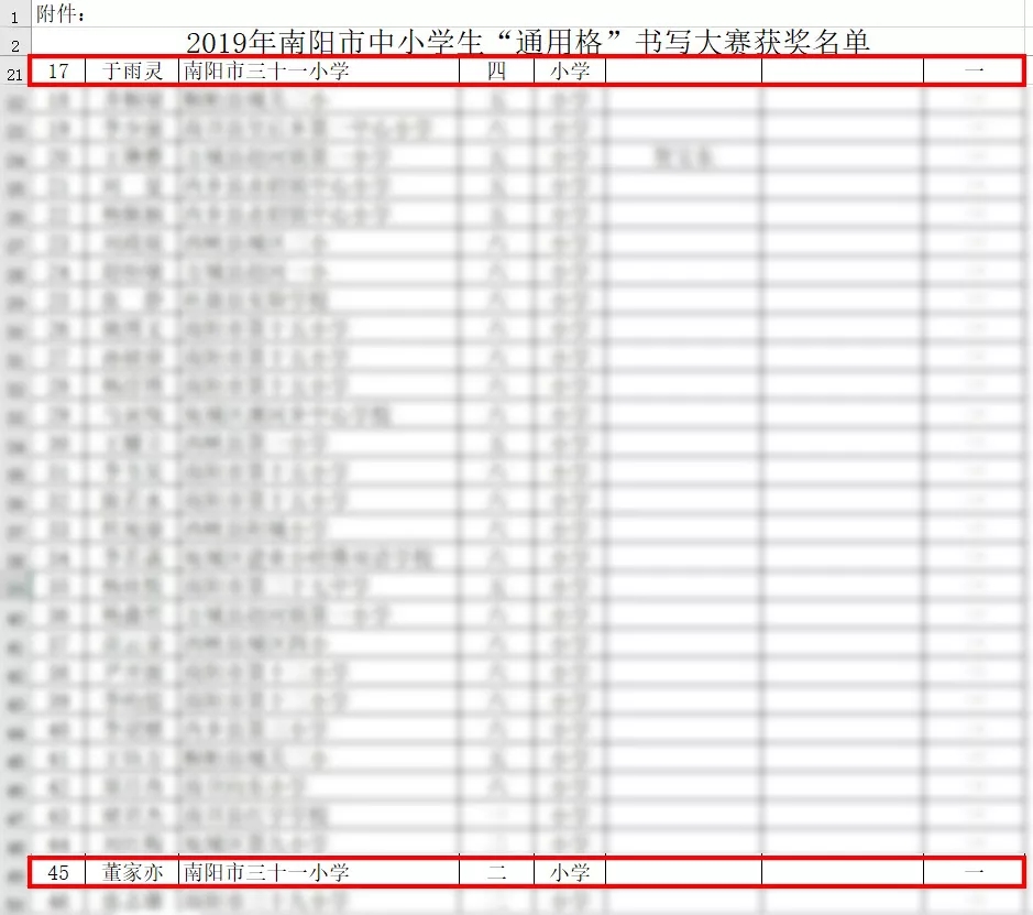 2019年4月27日,由南阳市教育局主办的南阳市中小学生硬笔书写大赛在南阳市姜营小学成功举办,来自全市的500多名中小学生参加了比赛。日前获悉,南阳市第三十一小学选送的两名学生董家亦、于雨灵均获一等奖。