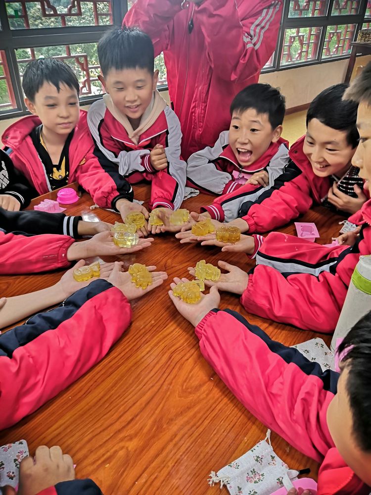 看着自己亲手做的手工皂,瞧我们多开心!这份灿烂的笑容,将定格在童年的记忆里。