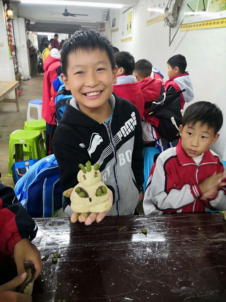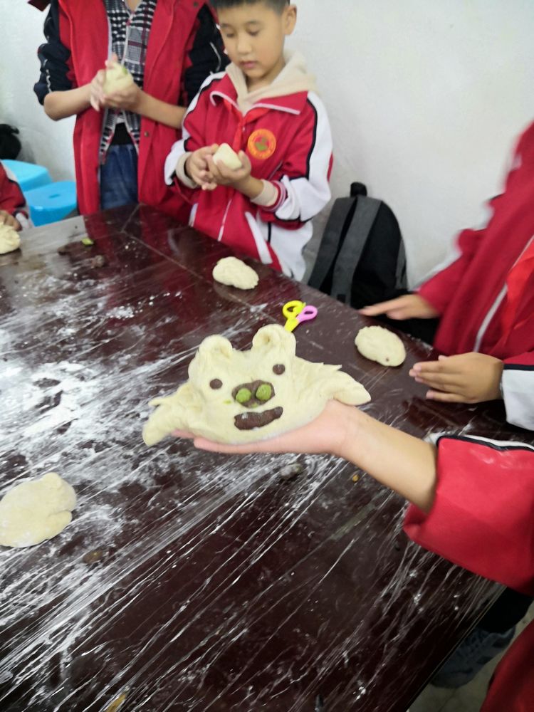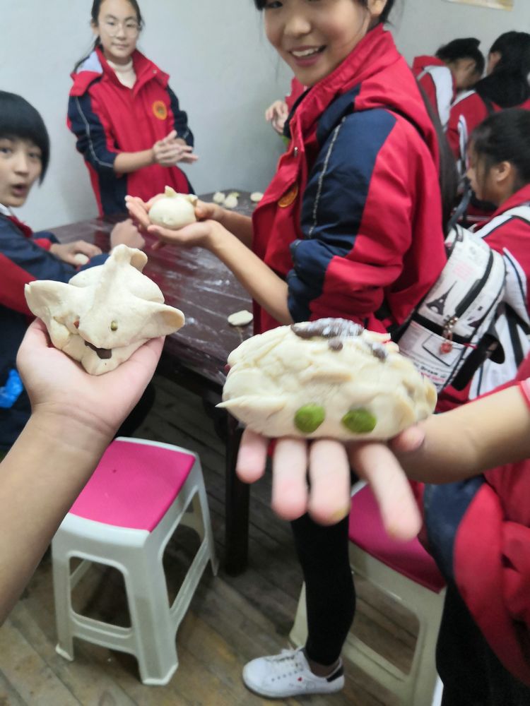 通过亲手制作馒头,我们不仅知道了酵子的秘密,而且明白了节约爱惜粮食的道理,更让我们有机会一显身手,充分发挥出我们天才的创造力,瞧瞧我们加工的造型馒头,是否特捧特有才?赢得一片喝彩!