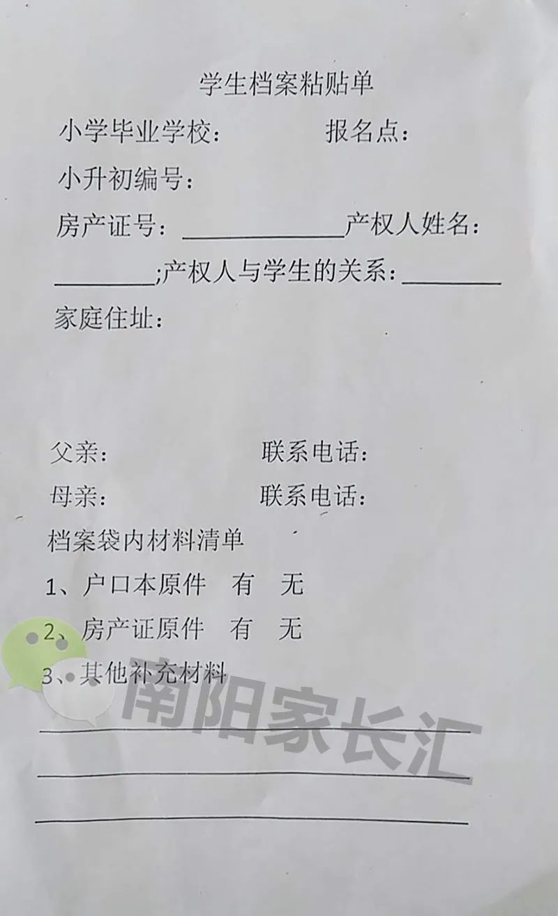 今天在现场的家长还发了一个粘贴单,大家记得提前了解学校的入学公告,带齐资料。把档案交上去后,会给一个提档案条,录取后去小学班主任那里提档用。