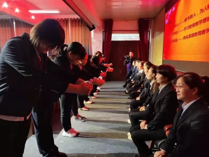会上,教师齐声诵读先贤为师者名言,青年教师向指导教师行拜师帖,会议希望做好传帮带,实现教师互促并进、共同提高。