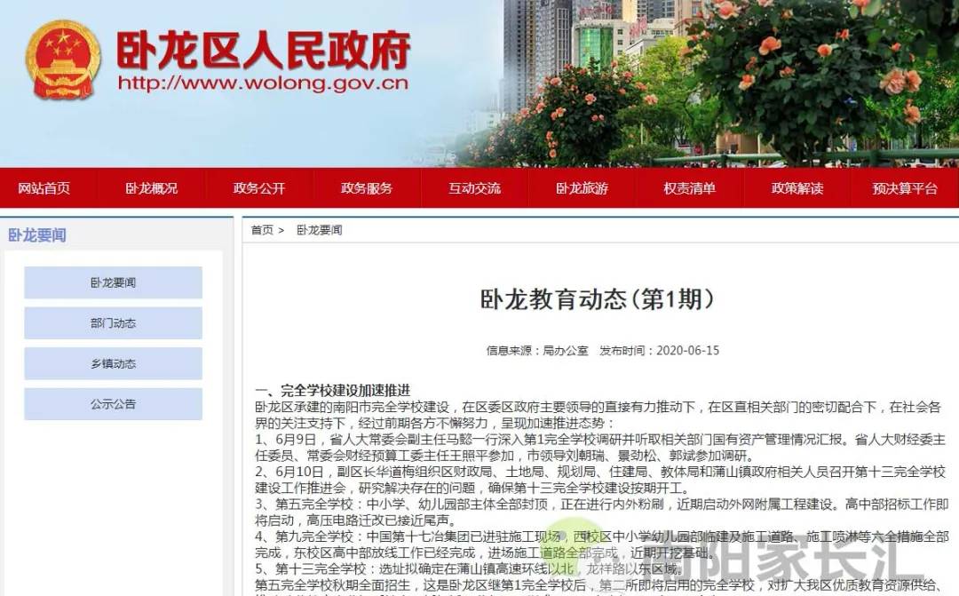 近日,卧龙区政府网站发布了卧龙区教育动态(第一期)