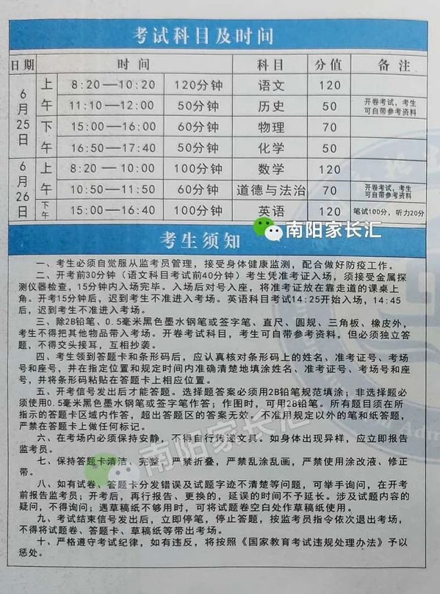 近日部分南阳初三考生已经拿到准考证,准考证正面有条形码、学生照片、学生所属县区 、姓名、性别、考场、座号、准考证号、身份证号、考点名称。